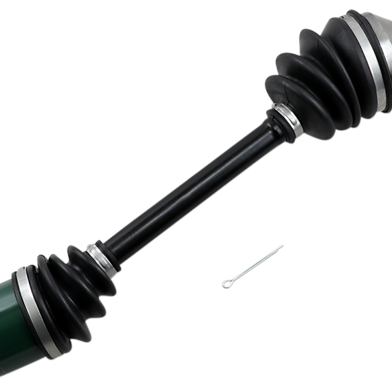 Caracteristicas: Precision machined and heat treated solid chromoly steel center shaft, cages, races and ball bearings up to 35% stronger Highest quality, most reliable, and toughest constant velocity axles on the market Manufactured in a state-of-the-art ISO9001 and TS16949 certified factory Induction heat treated joints packed with high performance moly grease Designed to withstand the most rigorous conditions and terrain High-strength spring steel retaining clips (where required) Torture tested to failure to ensure maximum durability Exceed OEM quality in fit, form and function Secure stainless steel dust boot clamps Fully assembled for easy installation Precision rolled splines and threads