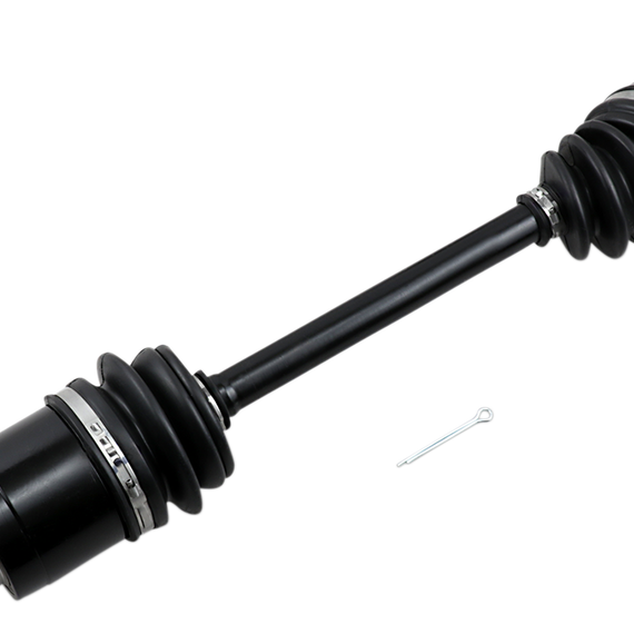 Caracteristicas: Precision machined and heat treated solid chromoly steel center shaft, cages, races and ball bearings up to 35% stronger Highest quality, most reliable, and toughest constant velocity axles on the market Manufactured in a state-of-the-art ISO9001 and TS16949 certified factory Induction heat treated joints packed with high performance moly grease Designed to withstand the most rigorous conditions and terrain High-strength spring steel retaining clips (where required) Torture tested to failure to ensure maximum durability Exceed OEM quality in fit, form and function Secure stainless steel dust boot clamps Fully assembled for easy installation Precision rolled splines and threads