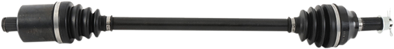 Caracteristicas: Axles are 20% stronger than OEM, 50% stronger than competing aftermarket axles and last 12 times longer than competing axles Axles feature eight precision ball bearings with cage and race sizes that are up to 35% larger for greatly increased CV joint strength Manufactured in facilities that are certified and meet the ISO 9001 quality manufacturing standard Designed with a larger-than-stock chromoly axle shaft and low-profile allow clamps
