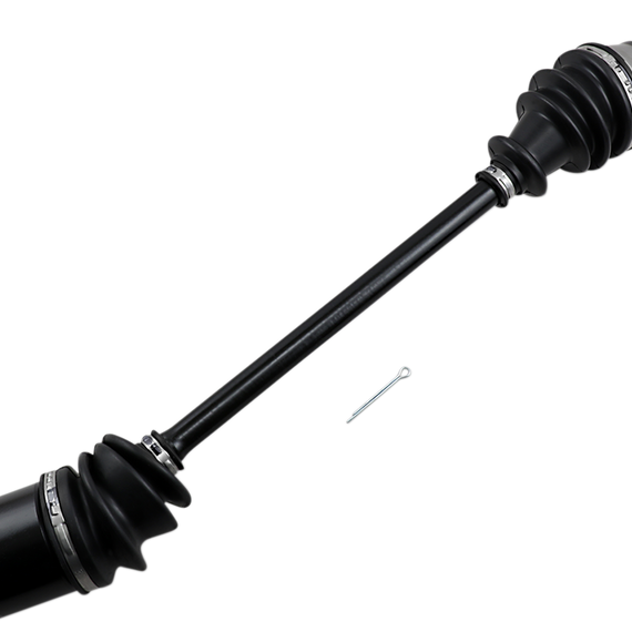 Caracteristicas: Precision machined and heat treated solid chromoly steel center shaft, cages, races and ball bearings up to 35% stronger Highest quality, most reliable, and toughest constant velocity axles on the market Manufactured in a state-of-the-art ISO9001 and TS16949 certified factory Induction heat treated joints packed with high performance moly grease Designed to withstand the most rigorous conditions and terrain High-strength spring steel retaining clips (where required) Torture tested to failure to ensure maximum durability Exceed OEM quality in fit, form and function Secure stainless steel dust boot clamps Fully assembled for easy installation Precision rolled splines and threads