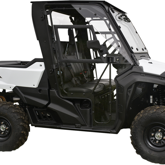 Caracteristicas: Complete cabs include tilt windshield, roof, rear panel and door set; tilt windshield/roof/rear panel and door set also available separately Front windshields are made of laminated tempered safety glass; two-position tilt-out function is gas cylinder assisted; wiper and washer kit sold separately; window is attached to the overhead guard with a metal clamping system and locks in two positions for air intake Roof is constructed of 13 gauge steel, zinc coated and then powder coated to provide maximum rust protection; noise-reduction insulation is affixed on the inside of the roof as well as metal frames and supports Rear panel is made from 5mm transparent, double UV protected, twice hardened coated polycarbonate sheet Doors are made from a combination of the safety glass (sliding windows) and the transparent, double UV protected, hard coated polycarbonate with metal reinforcing structure; both doors are lockable and fully openable; each door is equipped with a heavy-duty, key locking latch system Cab heater kit and wiper/washer kits sold separately - see Related Products No drilling into the frame is necessary during the entire installation