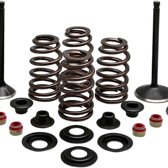 Caracteristicas: Kits include KPMI® or equivalent valve spring kit, a full set of Black Diamond™stainless steel standard size valves, H.T. Steel valve keepers and valve stem seals (where applicable) for engine applications listed All valves are impregnated by a special process to a depth of .002” with a surface buildup of .0002” This process improves wear properties, reduces friction and provides resistance to corrosion and wear Compatible with leaded and unleaded fuels• Sold as complete kits for one engine Made in the U.S.A Sold as complete kit for one engine