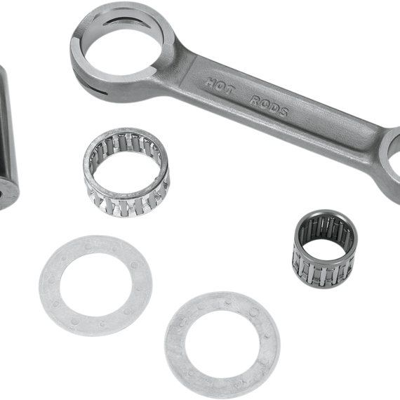 Caracteristicas: Heavy-duty OE replacement connecting rods Certified 8620 AISI steel provides superior strength Crankpins are manufactured from hot-rolled ASTM 4115 and case hardened to 58-62Rc Feature the latest in caged needle roller bearing designs for high rpm longevity Uniquely designed big end uses strategically located side scalloping and vent slots to minimize bearing race distortion at high rpm Small ends are double drilled to supply extra lubrication and cooling to the wrist pin bearing, which is especially important when the piston crown is close to the wrist pin bearing Shot-peened to eliminate surface stress risers and to smoothly blend together the rod forging's radiuses Double honing produces an ultra-round bearing surface for reliability at high rpm Most rod assemblies are sold complete with rod, crank pin, crank pin bearing, top-end bearing and silver-coated bronze phosphor thrust washers Compatible with Hot Rods and OE crankshafts Made in U.S.A.; connecting rod manufactured at Hot Rods Iowa facility
