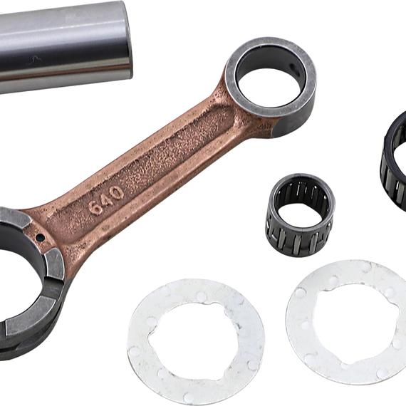 Caracteristicas: Heavy-duty OE replacement connecting rod Certified 8620 AISI steel provides superior strength Uniquely designed big end uses strategically located side scalloping vent slots to minimize high-RPM bearing race distortion Crankpins are manufactured from hot-rolled ASTM 4115 and case hardened to 58-62Rc Hot Rods uses the latest in caged needle roller bearing designs for high RPM longevity Thrust washers are manufactured from bronze phosphor and are silver coated Rod assembly sold complete with rod, crankpin, crankpin bearing, top-end bearing and thrust washers Compatible with Hot Rods and OE crankshafts Made in U.S.A.