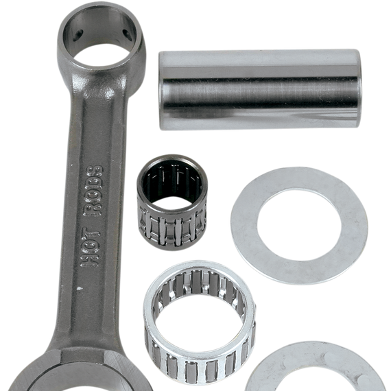 Caracteristicas: Heavy-duty OE replacement connecting rods Certified 8620 AISI steel provides superior strength Crankpins are manufactured from hot-rolled ASTM 4115 and case hardened to 58-62Rc Feature the latest in caged needle roller bearing designs for high rpm longevity Uniquely designed big end uses strategically located side scalloping and vent slots to minimize bearing race distortion at high rpm Small ends are double drilled to supply extra lubrication and cooling to the wrist pin bearing, which is especially important when the piston crown is close to the wrist pin bearing Shot-peened to eliminate surface stress risers and to smoothly blend together the rod forging's radiuses Double honing produces an ultra-round bearing surface for reliability at high rpm Most rod assemblies are sold complete with rod, crank pin, crank pin bearing, top-end bearing and silver-coated bronze phosphor thrust washers Compatible with Hot Rods and OE crankshafts Made in U.S.A.; connecting rod manufactured at Hot Rods Iowa facility