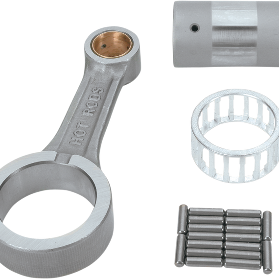 Caracteristicas: Heavy-duty OE replacement connecting rods Certified 8620 AISI steel provides superior strength Crankpins are manufactured from hot-rolled ASTM 4115 and case hardened to 58-62Rc Feature the latest in caged needle roller bearing designs for high rpm longevity Uniquely designed big end uses strategically located side scalloping and vent slots to minimize bearing race distortion at high rpm Small ends are double drilled to supply extra lubrication and cooling to the wrist pin bearing, which is especially important when the piston crown is close to the wrist pin bearing Shot-peened to eliminate surface stress risers and to smoothly blend together the rod forging's radiuses Double honing produces an ultra-round bearing surface for reliability at high rpm Most rod assemblies are sold complete with rod, crank pin, crank pin bearing, top-end bearing and silver-coated bronze phosphor thrust washers Compatible with Hot Rods and OE crankshafts Made in U.S.A.; connecting rod manufactured at Hot Rods Iowa facility