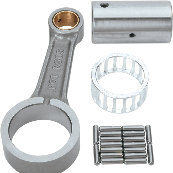 Caracteristicas: Heavy-duty OE replacement connecting rods Certified 8620 AISI steel provides superior strength Crankpins are manufactured from hot-rolled ASTM 4115 and case hardened to 58-62Rc Feature the latest in caged needle roller bearing designs for high rpm longevity Uniquely designed big end uses strategically located side scalloping and vent slots to minimize bearing race distortion at high rpm Small ends are double drilled to supply extra lubrication and cooling to the wrist pin bearing, which is especially important when the piston crown is close to the wrist pin bearing Shot-peened to eliminate surface stress risers and to smoothly blend together the rod forging's radiuses Double honing produces an ultra-round bearing surface for reliability at high rpm Most rod assemblies are sold complete with rod, crank pin, crank pin bearing, top-end bearing and silver-coated bronze phosphor thrust washers Compatible with Hot Rods and OE crankshafts Made in U.S.A.; connecting rod manufactured at Hot Rods Iowa facility