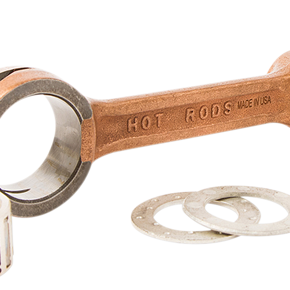 Caracteristicas: Heavy-duty OE replacement connecting rods Certified 8620 AISI steel provides superior strength Crankpins are manufactured from hot-rolled ASTM 4115 and case hardened to 58-62Rc Feature the latest in caged needle roller bearing designs for high rpm longevity Uniquely designed big end uses strategically located side scalloping and vent slots to minimize bearing race distortion at high rpm Small ends are double drilled to supply extra lubrication and cooling to the wrist pin bearing, which is especially important when the piston crown is close to the wrist pin bearing Shot-peened to eliminate surface stress risers and to smoothly blend together the rod forging's radiuses Double honing produces an ultra-round bearing surface for reliability at high rpm Most rod assemblies are sold complete with rod, crank pin, crank pin bearing, top-end bearing and silver-coated bronze phosphor thrust washers Compatible with Hot Rods and OE crankshafts Made in U.S.A.; connecting rod manufactured at Hot Rods Iowa facility