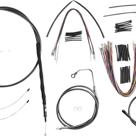 Caracteristicas: KARBONFIBR wire braid is created from distinct black and gray tone wire colors which are blended and interwoven together to mimic the look of hi-tech carbon fiber. This unique alternative black braid highly complements black or blackout color scheme motorcycles Kits include – Premium DOT brake lines, clutch cable or hydraulic clutch line, throttle and idle cables or throttle-by-wire extensions, hardware, and fully terminated or plug-and-play switch and turn signal extensions Matching KARBONFIBR braided hydraulic lines and control cables provide a precise, OE fit KARBONFIBR high-efficiency cables feature anti-friction liners and inserts, durable clear coating, are factory lubricated for smooth, long-lasting operation, plus they meet or exceed OE specifications Clutch cables include a water-proof adjuster and a transmission fitting seal to eliminate oil leaks Premium KARBONFIBR DOT brake lines incorporate PTFE tubing braided with DuPontTM Kevlar® Aramid Fiber reinforcement, Signature braid, and a clear PVC jacket Every Magnum brake line is pressure tested and fully FMVSS-106 compliant