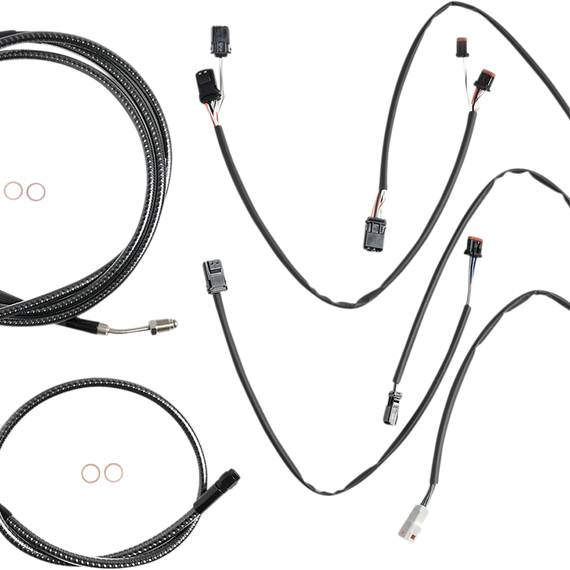 • Kits include – Premium DOT brake lines, clutch cable or hydraulic clutch line, throttle and idle cables or throttle-by-wire extensions, hardware, and fully terminated or plug-and-play switch and turn signal extensions