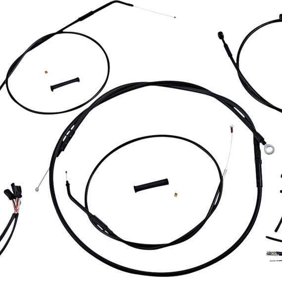 Caracteristicas: Magnum XR Handlebar Installation Kits offer a great fit and excellent quality at an economical price Kit features highly polished, chrome plated fittings All cables are a low effort, high efficiency design that meets or exceeds all OE specifications for fitment, construction, endurance Magnum XR Brake Lines use an enhanced construction of heavy gauge stainless steel embedded in tough abrasion resistant nylon outer jacket for superior durability and extreme braking response for safe riding The coating on cables and brake lines offers exceptional protection for paint or chrome Kits that include manifolds use an all brazed construction to ensure optimal OE fitment and appearance Manifolds use -3 AN connections for an easy installation Kits include throttle and idle cables or throttle-by-wire extensions, clutch cable or XR hydraulic clutch line, XR brake lines, copper crush washers, hardware, turn signal and switch wiring extensions Kits are based on using ape hanger style handlebars and 2" risers.