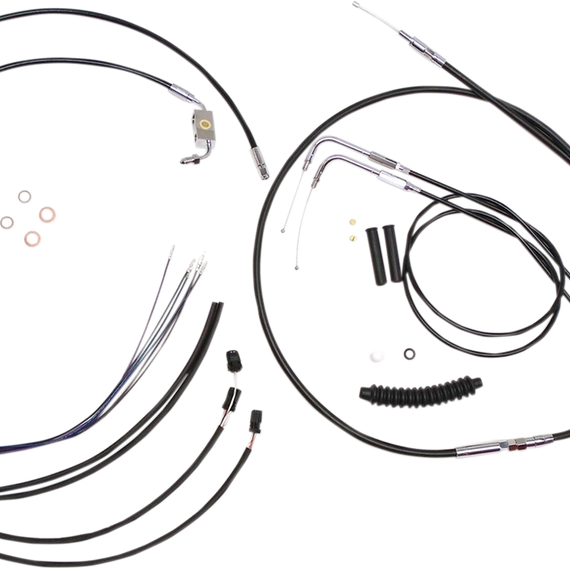 • Kits include throttle and idle cables or throttle-by-wire extensions, clutch cable or XR hydraulic clutch line, XR brake lines, copper crush washers, hardware, turn signal and switch wiring extensions