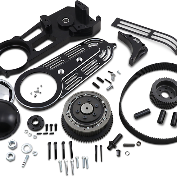 Caracteristicas: 2" drive kits loaded with style to accommodate custom trends All-billet construction with a unique top guard that provides long-lasting service and functionality Kits include a ball-bearing lockup clutch, a top belt guard and four different dome covers to allow for four different looks in one kit Made in the U.S.A.