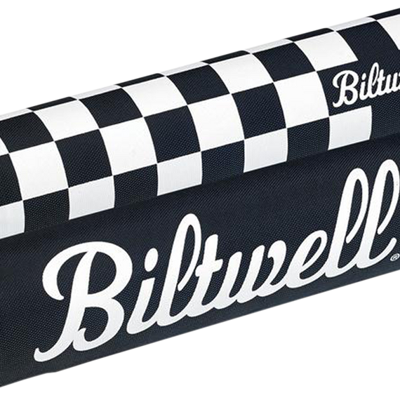 Caracteristicas: Double-sided bar pad fits Moto Bars and other crossbar-equipped handlebars Made from durable nylon Easily change your look between a black and white checkered side and a large script logo side 8.25" with a 2" OD and a 3/4" hole down the middle