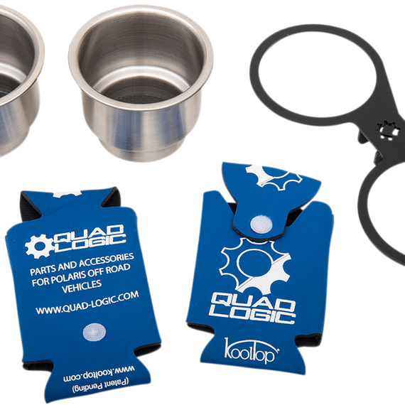 Caracteristicas: Two stainless steel cup holders are included with bottom drain holes Strong double sided tape around the lip of the cup holders keeps them secure to the mount Includes two custom foam can koozies Made in the U.S.A.