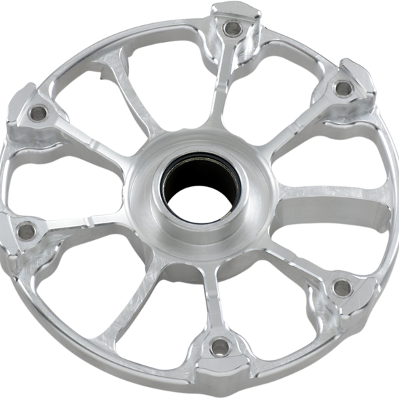 Caracteristicas: Replaces the stock clutch cover Maximizes cooling Fan blades were designed into the billet cover to effectively move air while decreasing weight and increasing strength Decreases belt temp prolonging belt life Constant cooling directed on the primary clutch 40-50 Degree decrease in temps 6061 Billet Aluminum Designed, developed, and built in the USA