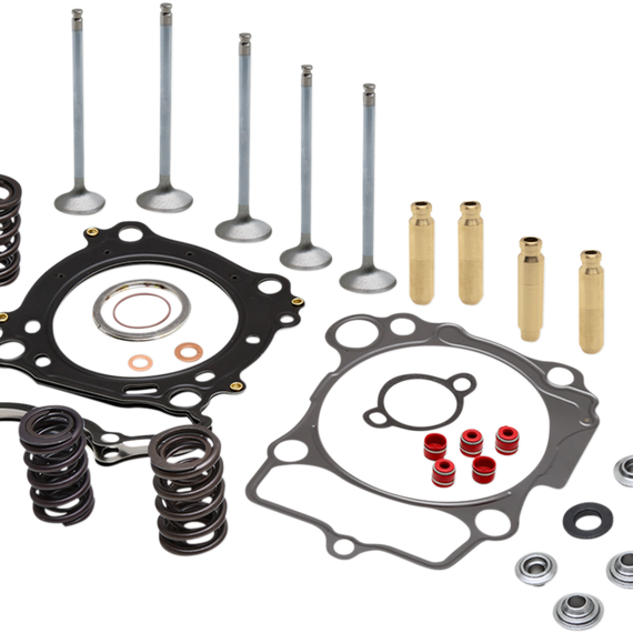 Caracteristicas: Kits contain all items to completely refresh and upgrade cylinder heads for popular Dirt/MX and Side x Side models Cylinder Head Service Kits include the below components: Lightweight Racing Valve Spring kits with steel or titanium retainers, beehive or dual valve springs, steel basewashers and Viton® valve stem seals A full set of C630 bronze high-performance valve guides for durability and heat management (standard size) A full top-end gasket kit including (base gasket, engine case gasket, exhaust gasket, head gasket, and other o-rings/washers depending on application)