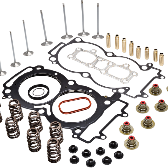 Caracteristicas: Kits contain all items to completely refresh and upgrade cylinder heads for popular Dirt/MX and Side x Side models Cylinder Head Service Kits include the below components: Lightweight Racing Valve Spring kits with steel or titanium retainers, beehive or dual valve springs, steel basewashers and Viton® valve stem seals A full set of C630 bronze high-performance valve guides for durability and heat management (standard size) A full top-end gasket kit including (base gasket, engine case gasket, exhaust gasket, head gasket, and other o-rings/washers depending on application)