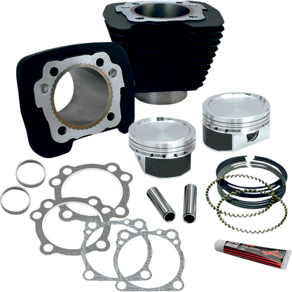 Caracteristicas: Increase displacement from 883cc to 1200cc Saves time because pistons are already fit to the cylinders - ready to assemble out of the box Cylinders are constructed from premium aluminum castings with cast-in iron liners No machining No re-balancing of 883cc flywheels No cylinder head modifications Big bore 3-1/2" cylinders 9.4:1 with stock 883cc heads Kits include cylinders, pistons, rings and gaskets (head, base and exhaust) Made in the U.S.A.