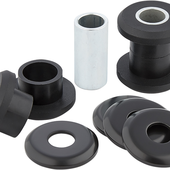 Caracteristicas: Black coated versions of the Industry leading polyurethane dampening kits A must when installing new handlebars or bikes with heavy engine vibration  Eliminates flex while isolating vibration  Proprietary polyurethane bushings are specially made to reduce vibration as well as add a more positive and rigid feel to your handlebar  Heavy duty cup washers will not bend or distort like factory units  Each kit includes polyurethane bushings, inner steel sleeves and heavy duty black coated cup washers