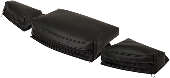 Caracteristicas: Windshield dash pouch system Tri-Pouch System is a new design of their three distinct pouches Improved adhesion to the textured dash at highway speed Center pouch compartment is a generous 9" x 6" x 2" and two side compartments each measure 5" x 4” x 1.5" All pouches close with a zipper to ensure nothing falls out while riding Made in the U.S.A.