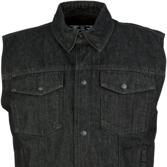 Caracteristicas: Heavyweight 100% cotton denim chassis Metal snap; concealed zipper front closure Polyester mesh liner wicking moisture Metal snap; concealed zipper front closure Adjustable sides for a custom fit Two zippered hand warmer pockets Two exterior and one interior chest pockets