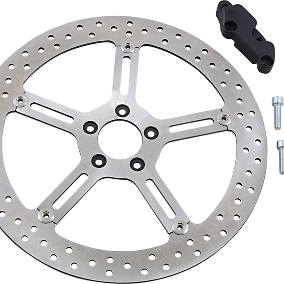 Caracteristicas: Provide 30% minimum more stopping power than factory-sized rotors Includes oversized floating stainless-steel rotor and billet brake caliper adapter and necessary hardware Designed to work with factory fork legs