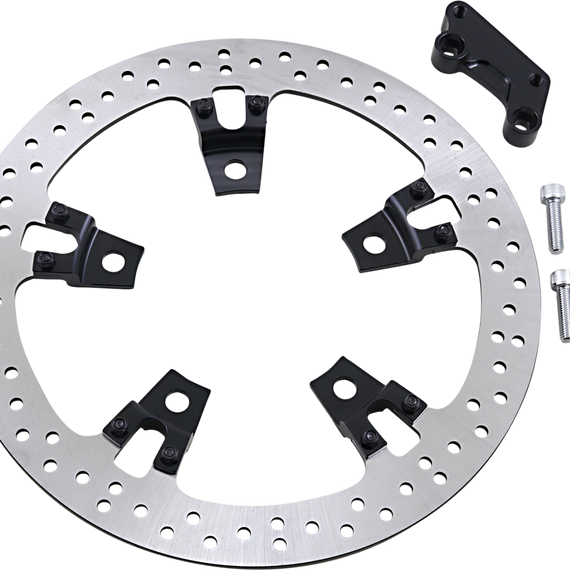 Caracteristicas: Provide 30% minimum more stopping power than factory-sized rotors Includes oversized floating stainless-steel rotor and billet brake caliper adapter and necessary hardware Designed to work with factory fork legs
