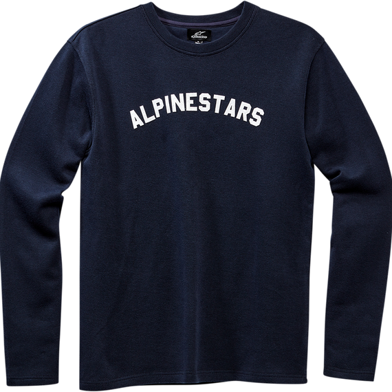 Caracteristicas: Premium long-sleeve knit t-shirt Rib crew collar, fold finished cuffs and hem Alpinestars word felt letter applique on chest Internal main label and external label branding 85% Cotton / 15% Polyester