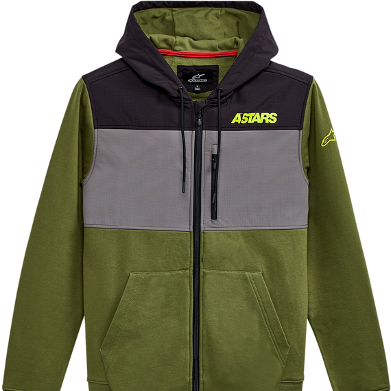 Caracteristicas: Hooded mix material fleece jacket Ripstop overlay front yoke panel and hood, fleece body Coil zipper at front, zip chest pocket set in overlay Rib cuffs and hem Internal main label and external label branding, print logo at sleeve 80% Cotton / 20% Polyester