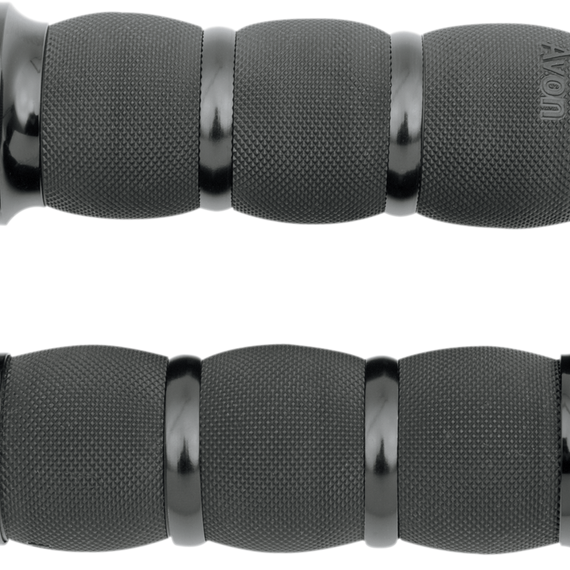 Caracteristicas: Feature billet end caps and rings with ergonomic AVON seamless rubber grip technology Designed with a very soft, tacky and durable material Fit 1" handlebars Made in the U.S.A.
