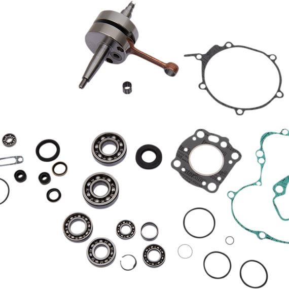 Caracteristicas: Complete engine rebuild kit Includes crankshaft, piston kit, complete engine gasket kit with oil seals, main bearings and seals, water pump rebuild kit, transmission bearings, countershaft bushing/seal kit, wrist pin bearing, cam chain and counter balancer bearings when applicable