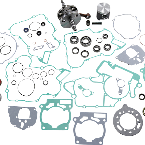 • Includes crankshaft, piston kit, complete engine gasket kit with oil seals, main bearings and seals, water pump rebuild kit, transmission bearings, countershaft bushing/seal kit, wrist pin bearing, cam chain and counter balancer bearings when applicable