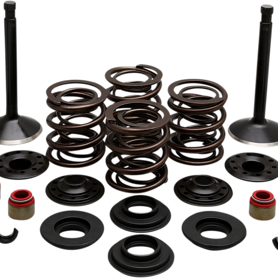 Caracteristicas: Kits include KPMI® or equivalent valve spring kit, a full set of Black Diamond™stainless steel standard size valves, H.T. Steel valve keepers and valve stem seals (where applicable) for engine applications listed All valves are impregnated by a special process to a  depth of .002” with a surface buildup of .0002” This process improves wear properties, reduces friction and provides resistance to corrosion and wear Compatible with leaded and unleaded fuels• Sold as complete kits for one engine Made in the U.S.A Sold as complete kit for one engine