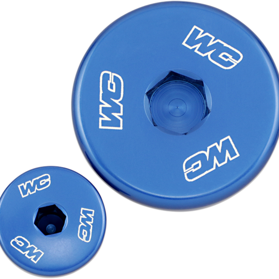 Caracteristicas: Precision machined from 6061 T-6 aluminum Simple positive installation with an Allen wrench Replaces the stock plugs Polished to a mirror finish prior to anodizing resulting in a brilliant look Laser Engraved WC logos Made in the USA
