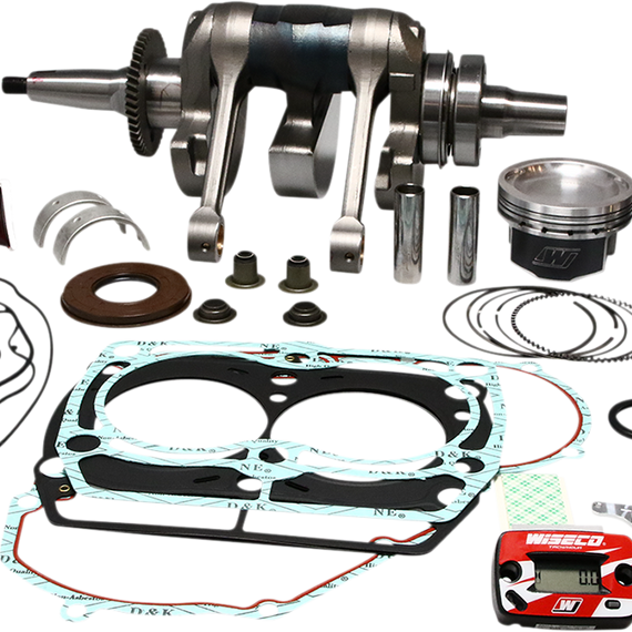 Caracteristicas: Includes all top and bottom-end components for a complete engine rebuild 4-stroke kits include a premium forged piston kit with stock compression ratio and a high-quality cam chain 2-stroke kits include a Pro-Lite¶© piston Crankshaft and rod assembly designed and inspected to assure durability Kit includes main bearings, seals, gaskets, an hour meter and bracket