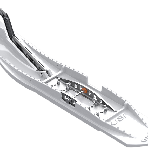 Caracteristicas: Adjustable aluminum mount shoes allow you to widen or narrow, as well as, lengthen or shorten the overall stance of your snowmobile while also adding durability, strength and a precise ski alignment Wide ski tip allows great floatation and helps get the ski on plane quickly Short center keel and cut and raised tail allow for aggressive steering with light steering effort Mini rear keel helps straight line tracking Traction nubs add a no-slip platform for any ski-mounted riding Includes two skis, black loops and black mount shoes Uses Stud Boy USI 301 series carbide wear bars (sold separately) Made in the U.S.A.