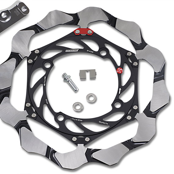 Caracteristicas: Designed with input from Braking's working experience with best teams in most important competitions in the world (MXGP and MX2) The braking track ensures a better heat dissipation, ensuring a steady friction coefficient The new connection structure allows a more controlled a radial axial play, with a better load transfer between the braking track and the carrier Thermal design optimized Maximum weight-to-performance ratio Consistent disc temperature Absence of heat spots Direct load transfer between rotor and hub No pin deformation due to applied load