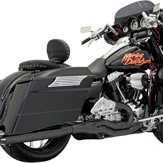 Caracteristicas: Designed specifically to address the needs of tuned motors built for high horsepower applications Use a unique extended inner collector maximizing performance Feature equal-length stepped headpipes; stepped three times (1-3/4" to 1-7/8" to 2") and are for 125+ horsepower applications 4" straight-style performance muffler body with 2-1/2" x 16-1/2" baffle and black billet end cap with contrasting machined flutes Include full-coverage heat shields Oxygen sensor port plugs also included for non-sensor applications Made in the U.S.A.