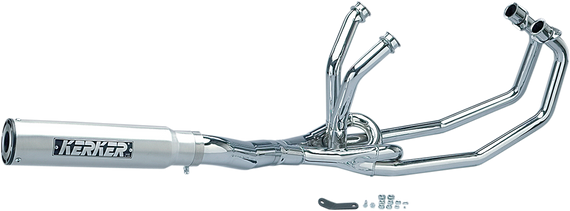 Caracteristicas: Full system; 4/2/1 style The tip's header coating chemically bonds with the metal, forming a protective skin impervious to corrosion, discoloration and heat up to 2000°F Show-quality chrome finish with a K-2-style end cap K-Series advantages include up to 12% increase in horsepower, 10 lb. to 25 lb. weight savings and improved corner clearance Requires removal of center stand mount tabs and center stand for installation Does not restrict oil filter/drain plug access