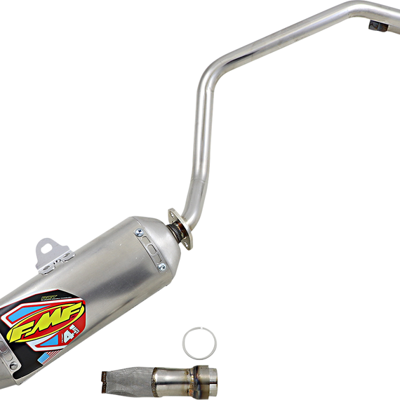 Caracteristicas: Superior power than stock systems Available with titanium and stainless steel headers FMF's Factory Forward Engineering centralizes mass and is less prone to crash damage Innovative rear end cap features simple installation of tuning tip inserts or spark arrestor with the removal of four screws Meet AMA and FIM sound requirements QuietCore 94 dB insert included Spark arrestor included in muffler