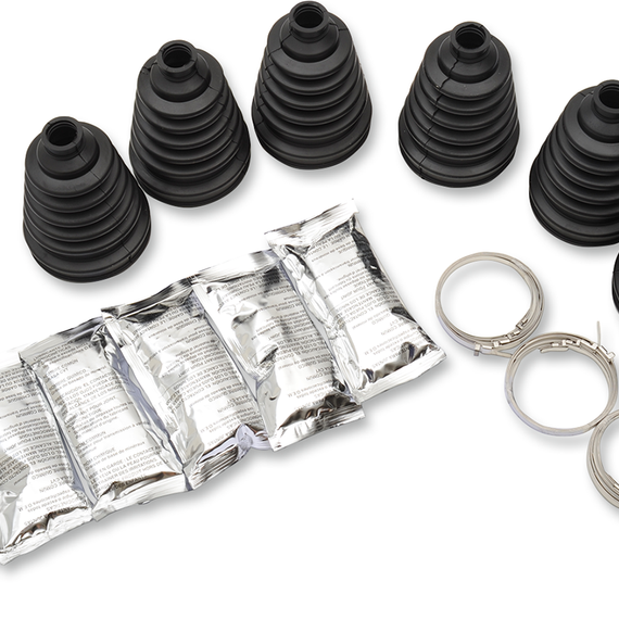 Caracteristicas: Perfect for ATVs and UTVs with extended suspension axles as found on Polaris RZR's, Can Am Mavericks, and many other off road vehicles. Fits both inner and outer joints on both front and rear axles for unmatched coverage Made from premium quality rubber in the USA Each kit includes a fast boot X, stainless steel clamps, CV grease, and detailed instructions