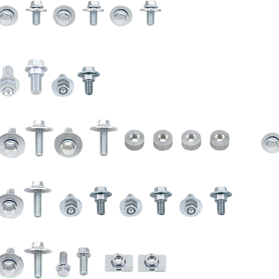 Caracteristicas: Include all factory replica fasteners and bushings needed to fasten complete bodywork Replacement OEM-style bolts and collar bushings for bodywork installation available separately Made in the U.S.A.