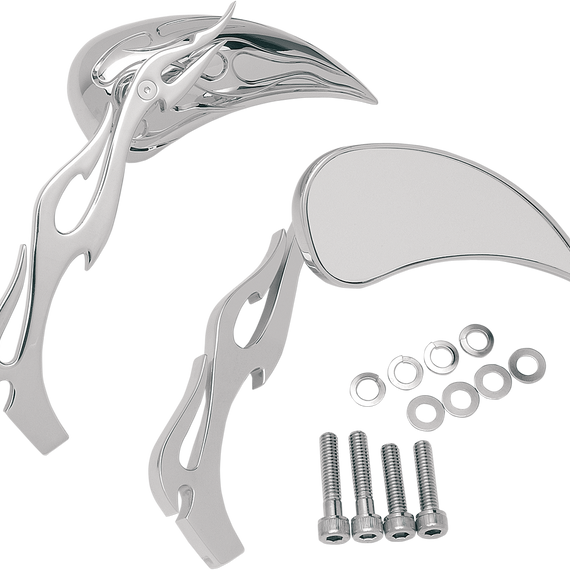 Caracteristicas: Cool teardrop head with 3-D surface flames Mirror head measures 5-1/4" x 2-1/2"