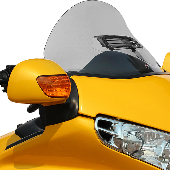 Caracteristicas: Wind-tunnel tested and proven performance Reduces annoying wind buffeting Adds stability to the front of the motorcycle by generating downforce at speed Manufactured from dual-side hard-coated polycarbonate material for outstanding impact strength Honda GL1800 Gold Wing applications retain factory height adjustment All styles install using OEM hardware GL Vented Flare uses the stock vent (vent not included) Made in the U.S.A.