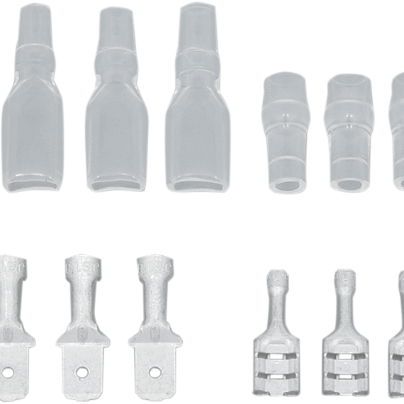 Caracteristicas: Includes five each of male/female flat terminals and plastic terminal sleeves/covers