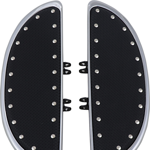 • Bowed floorboards feature machined billet construction, chrome-plated finish with black rubber inserts.