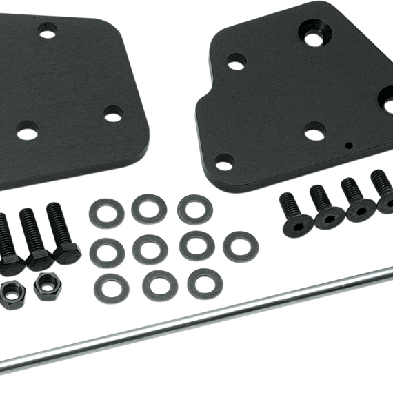 Caracteristicas: Moves floorboards, shifter and brake forward 2" Utilizes stock floorboards, shift lever, shifter arm and brake arm Black powder-coated aluminum extension plates, stainless steel extended shift rod and necessary mounting hardware included Made in the U.S.A. Extended rear brake line must be purchased separately Will not work with engine guards, except on FLSTF or highway bars; designed for use with stock fenders, brake pedals and shift levers Installation of this kit may cause interference between front fender and floorboards. Check clearance of fender and floorboards with front fork compressed and extended.