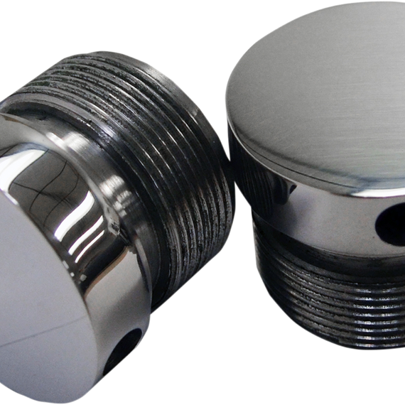 Caracteristicas: CNC machined from billet aluminum Easy installation using a single Allen wrench or a screwdriver Replace the stock hex-shaped fork caps that come stock and rest above the triple tree Made in the U.S.A.