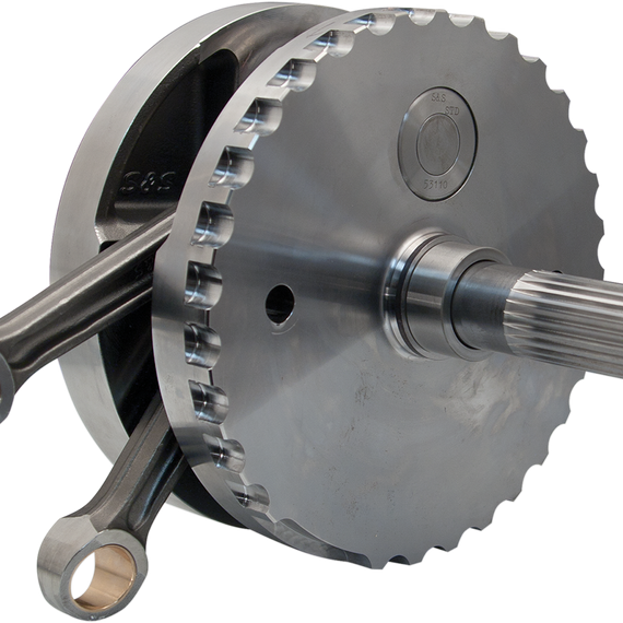 Caracteristicas: S&S 3-piece flywheels with integral main shafts are the strongest yet, made from 4140 steel and feature a larger 1.671" crankpin Flywheel assemblies are designed for use with Timken bearing conversion Fit directly in stock crankcases with no modifications Made in the U.S.A.
